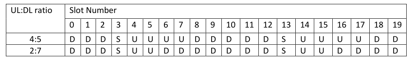 Table 1: Mandatory E-UTRA TDD UL/DL Configurations for the CBRSA CxG.